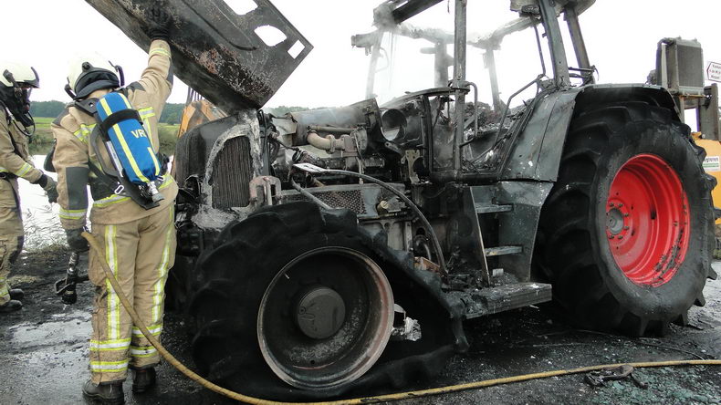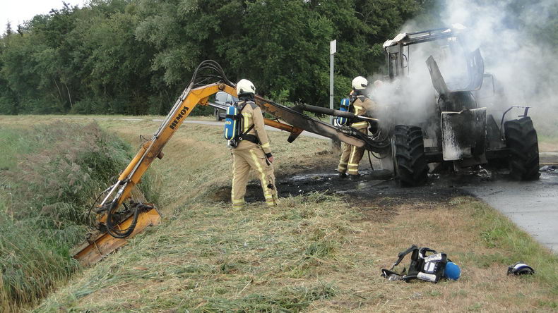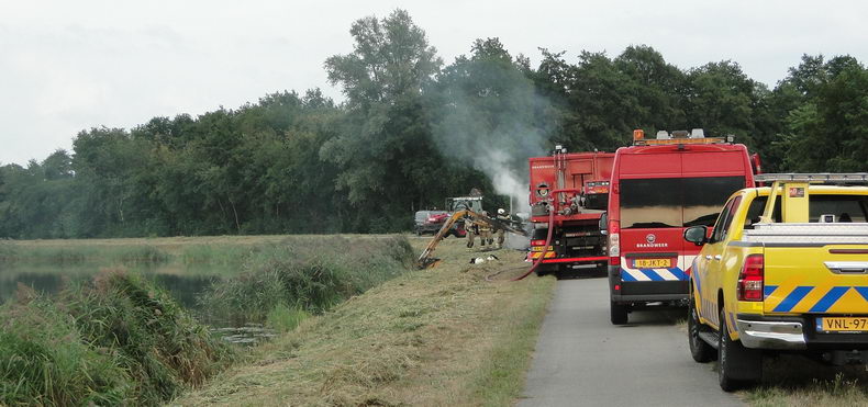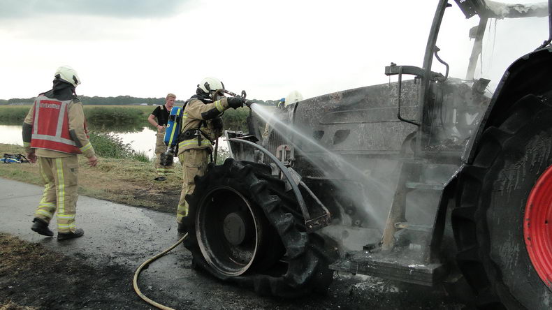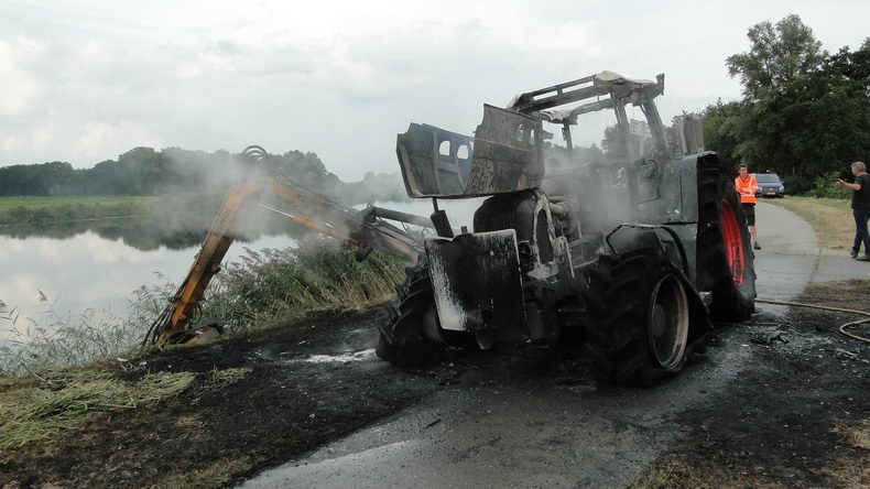 | Zuidwolde: landbouwtrekker volledig uitgebrand op het Vaartpad |
