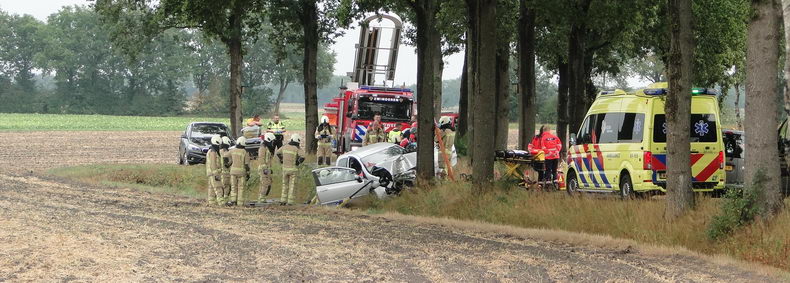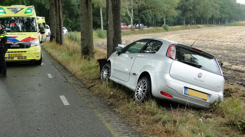 De bestuurster van een Fiat Punto, die op de Boerdijk in de richting van Nieuwlande reed, verloor op het na lange droogte natgeregende wegdek in de S-bocht de macht over het stuur, waardoor haar auto rechtdoor ging en met de neus tegen een boom klapte. |