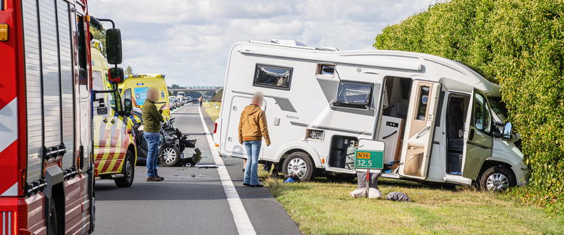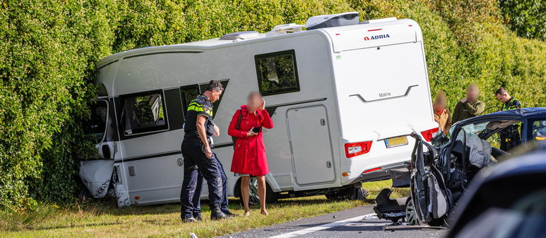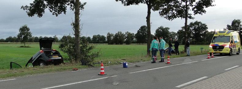 | Zondag tegen kwart voor twaalf werd alarm geslagen voor de brandweer van Hardenberg vanwege een "hulpverlening weg letsel" op de N36 bij Stegeren. Daar bleek een Peugeot 107 frontaal op een Adria kampeerwagen te zijn gebotst met fatale gevolgen voor de bestuurder van de personenauto, een 43-jarige inwoner van de gemeente Ommen. De camper schoot na de botsing naar links de berm in. De twee inzittenden van de camper zijn gewond naar een ziekenhuis vervoerd. Het gaat om een man van 66 en een vrouw (65), beiden uit Gieten. Beide voertuigen waren onherstelbaar beschadigd. |