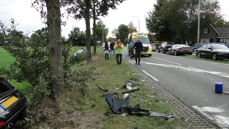 | Een blauwe VW Passat en een zwarte Fiat Punto maakten zaterdagavond op het Westeinde op onplezierige wijze kennis met elkaar. De bestuurder van de Volkswagen draaide van de uitrit van autobedrijf Hoeve het Westeinde op, maar zag de op die weg naderende Fiat over het hoofd. Na de onvermiijdelijke botsing kwamen beide auto's met flinke schade met de neus in de bermsloot tegenover het autobedrijf tot stilstand. Geluk bij een ongeluk: zowel de vrouw die de Fiat bestuurde als de man in de VW kwamen er zonder kleerscheuren vanaf. |