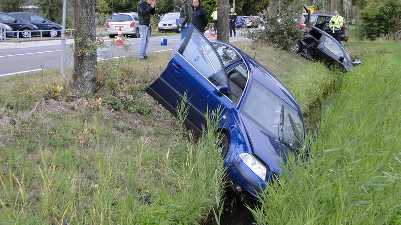 | Nieuwleusen: auto's belanden in sloot na aanrijding op het Westeinde |
