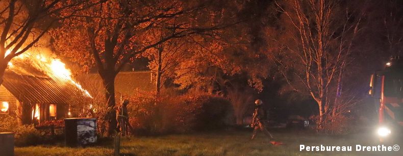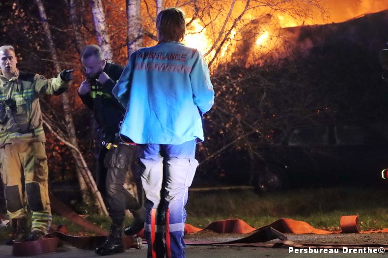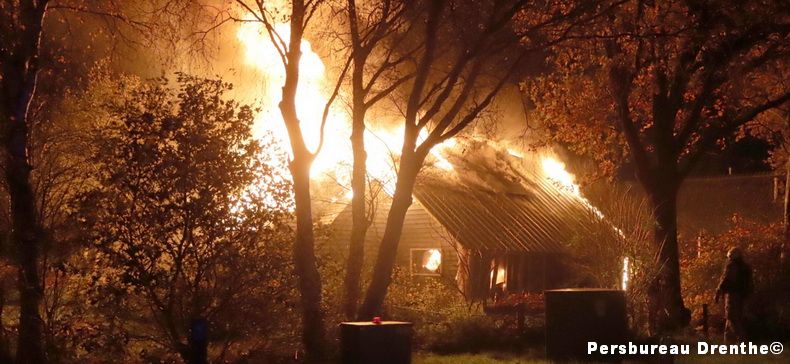 Aan de Giestee in Dalen staat een loods in brand. De loods hoort bij een rietgedekte woning in het dorp. Twee slachtoffers worden behandeld in de ambulance. Meerdere brandweerkorpsen uit Zwinderen, Emmen, Coevorden, Hoogeveen en de Wijk zijn opgeroepen om te helpen blussen. De brand is inmiddels uitslaand en de loods wordt als verloren beschouwd. De brandweer zet in op het redden van de boerderij. „Hiervoor proberen ze een scheiding te maken in het riet, zodat er een soort stoplijn ontstaat en de brand vanaf dat punt niet verder gaat”, zegt de voorlichtster van de VeiligheidsRegio Drenthe. De oorzaak van de brand is nog niet bekend. |