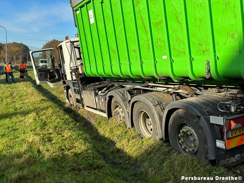| Gasselternijveen: Vrachtwagenchauffeur rijdt zich vast in berm |