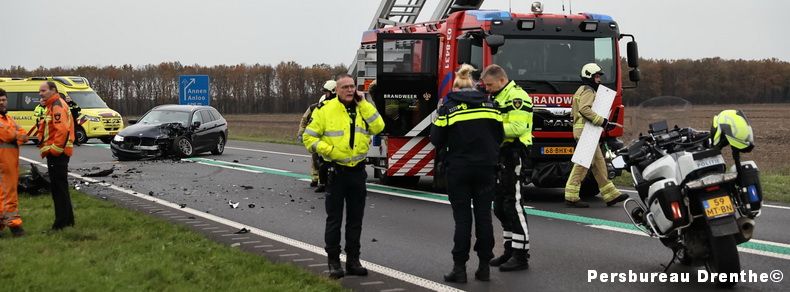 | Anloo: N34 geruime tijd dicht na ongeval |