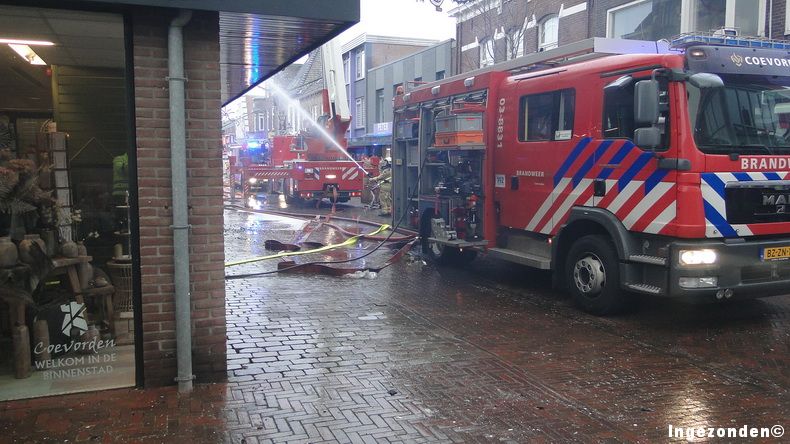 | Coevorden: Zeer grote brand in woning boven winkel |