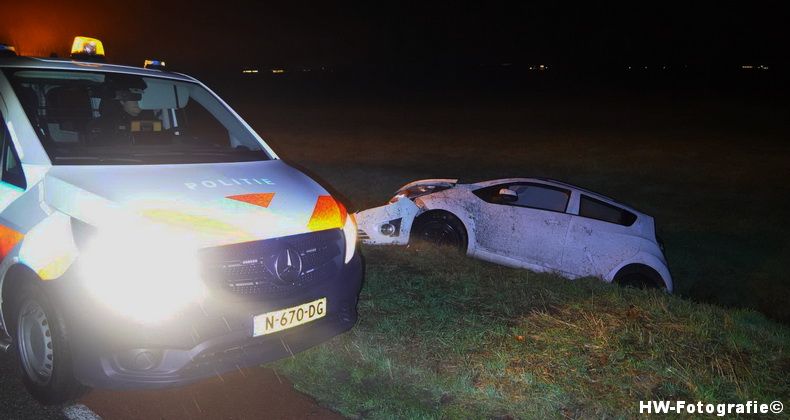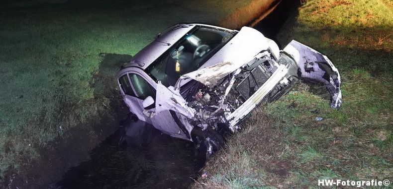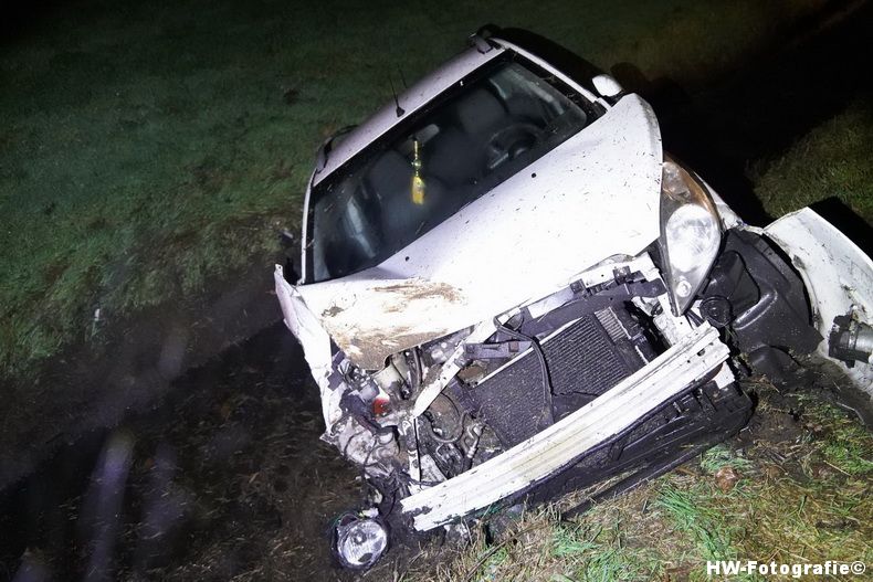 Op de Verkavelingsweg,tussen de Boerweg en de Schrotenweg is vrijdagavond een auto in de sloot beland. De automobilist reed richting Zwolle toen hij door onbekende oorzaak met zijn voertuig rechts naast de weg kwam. Hierop corrigeerde de automobilist iets te heftig waardoor zijn auto onbestuurbaar werd en zijdelings door de berm aan de andere kant van de weg schoot. Vervolgens gleed de auto hard in een slootwal en sloeg daarna een halve slag om. De bestuurder kon zelf ongedeerd uit de totaal vernielde auto stappen en hulp inschakelen. Voor de berging werd de weg volledig afgesloten door de politie. Bergingsbedrijf Hooikammer werd opgeroepen om de Chevrolet Spark uit de sloot te takelen en af te voeren. |