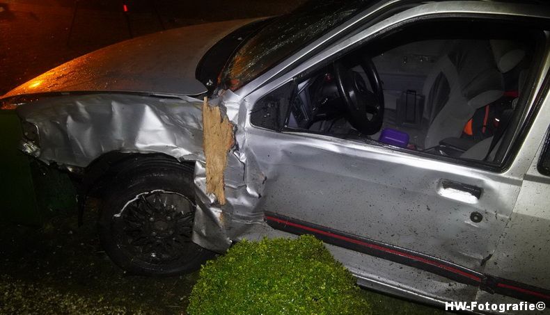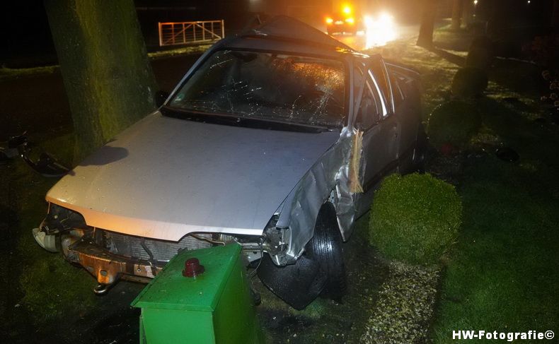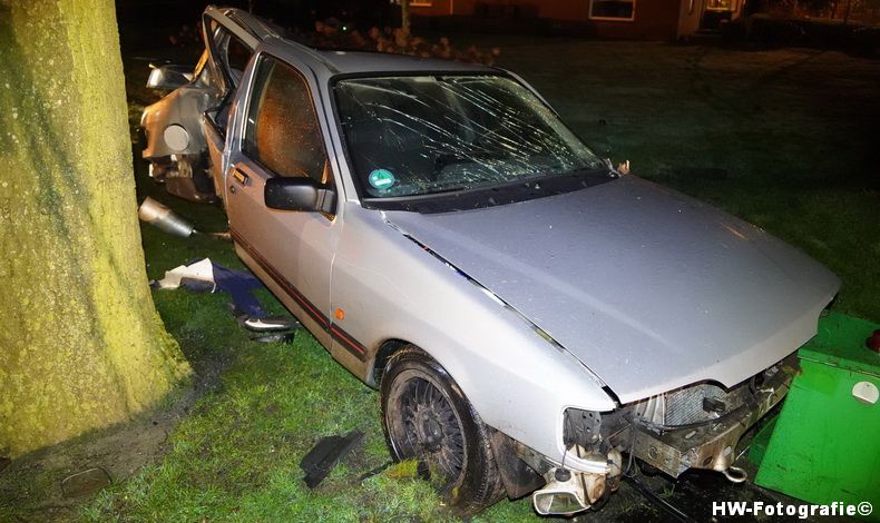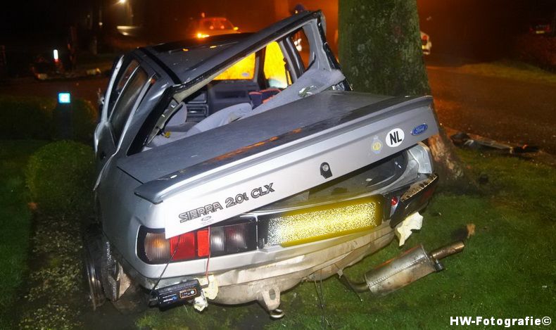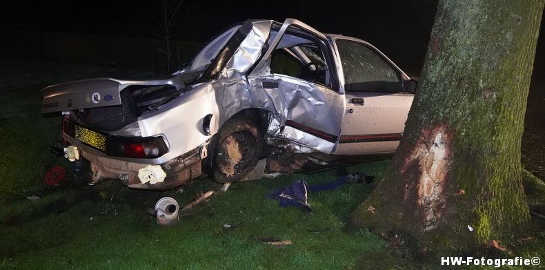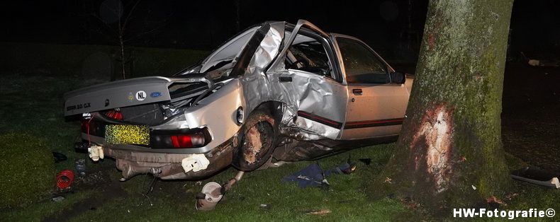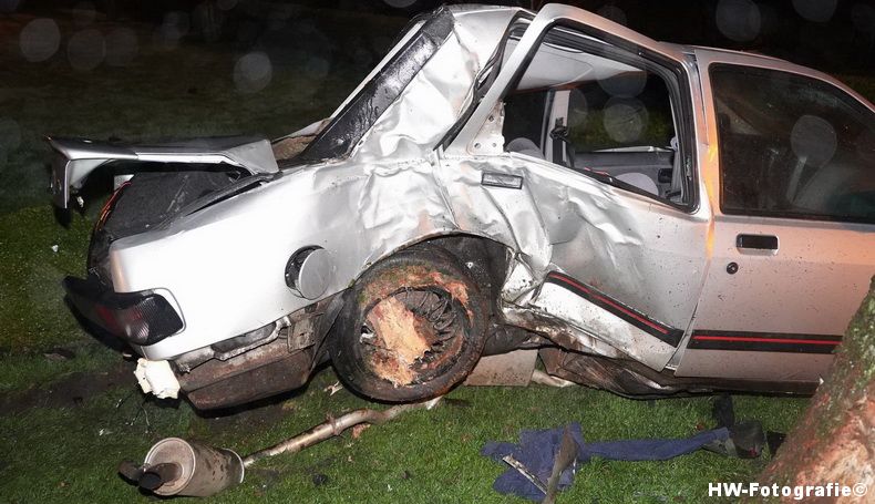Op de meldkamer van de politie kwam vannacht rond 01:45 een melding binnen van een eenzijdig ongeval aan de Klaas Kloosterweg West. Ter plaatse troffen agenten het voertuig aan en een persoon in de nabijheid van het voertuig. Na een klein onderzoek bleek dat dit de bestuurder was van de gecrashte auto. De auto reed richting de Viaductweg maar botste tegen een boom met de linkerzijde. Hierdoor was het voertuig onbestuurbaar en botste na tientallen meters opnieuw tegen een boom. Ditmaal met de rechter achterzijde om vervolgens tegen een rioleringskastje tot stilstand te komen. De bestuurder is ter plekke onderworpen aan een blaastest welke voor de 28-jarige man uit Staphorst verkeerd uitviel. De man was onder invloed en blies een indicatie “F” waarop de man is meegenomen naar het politiebureau voor een ademanalyse. Zijn rijbewijs werd ingevorderd en hij heeft een rijverbod opgelegd gekregen van 24 uur. Bij het eenzijdige ongeval heeft de man lichte verwondingen opgelopen en is op eigen initiatief naar een huisartsenpost gegaan. Bergingsbedrijf Hooikammer werd uit bed gebeld om de totaal vernielde Ford Sierra op te takelen en af te voeren. |