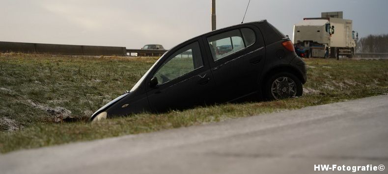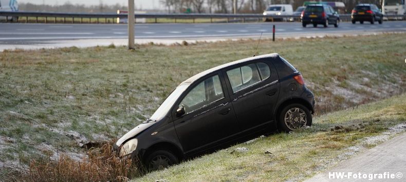 Een automobilist is vanmorgen op De Lichtmisweg van de weg geraakt en in een greppel tot stilstand gekomen. De man reed vanaf de bekende watertoren richting Zwolle toen hij in een flauwe bocht, ondanks zijn aangepaste snelheid, van de spekgladde weg raakte. Verkeer vanaf de snelweg zag de auto in de greppel staan en waarschuwden de hulpdiensten en gaven door dat er een voertuig in de sloot lag. Hun inzet was echter niet nodig want de bestuurder kon zelf de Toyota Yaris verlaten en stond ongeschonden naast zijn voertuig. Hierop konden politie en ambulance weer inrukken. |