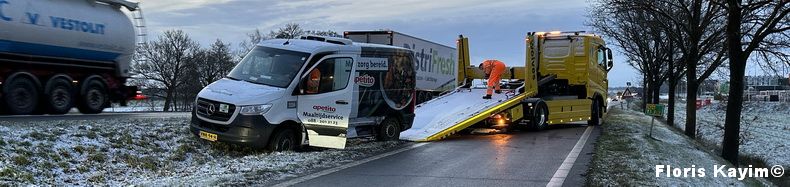 Dinsdagmorgen heeft er een aanrijding plaatsgevonden op de N36 bij Vriezenveen. Bij het ongeval botsten twee busjes op elkaar. Mogelijk speelde de gladheid een rol bij de oorzaak van de aanrijding. Één van de voertuigen raakte in een slip en gleed van de weg af. Het busje is door een berger afgesleept. Niemand raakte gewond. |