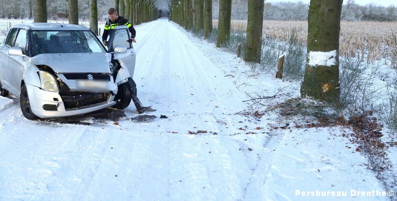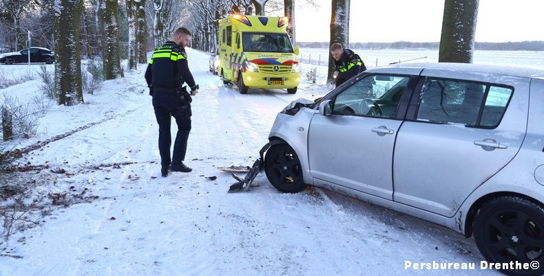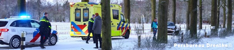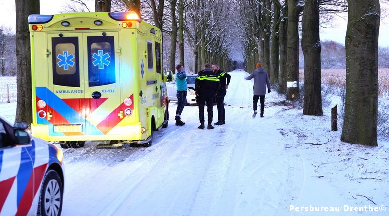 Een automobilist is vrijdagochtend op de Bosweg bij Gasselte door de gladheid de macht over het stuur verloren en tegen een boom gebotst. Ambulancepersoneel ontfermt zich over de inzittende maar deze hoefde niet mee naar het ziekenhuis. De partner van de bestuurder heeft hem opgehaald. Het verkeer kon langs de plek van het ongeluk rijden. Berger Hamstra uit Tynaarlo heeft de auto geborgen. |