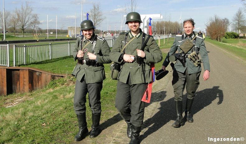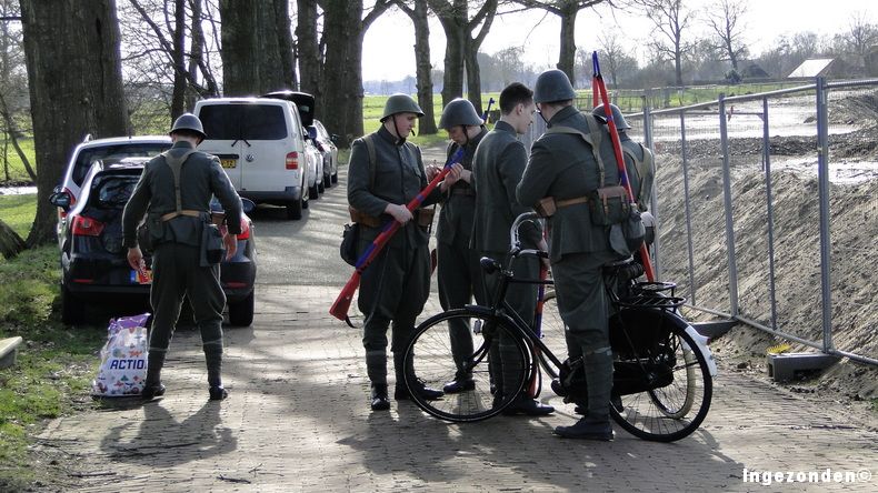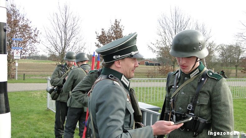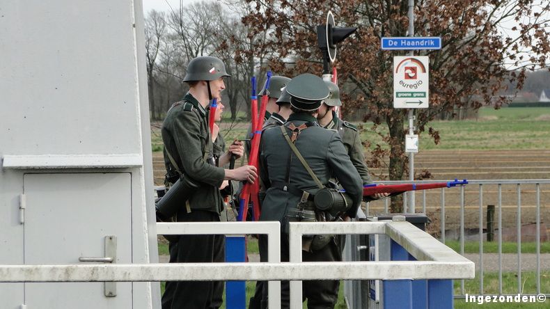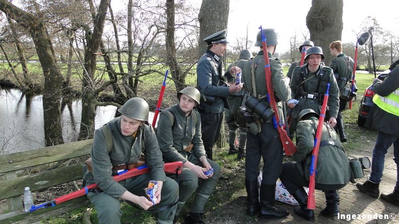 Het was een merkwaardig beeld, dat ik voor ogen kreeg, zaterdagmiddag, toen ik van Coevorden naar Gramsbergen reed. Het bleek dat er een documentaire opgenomen werd over de strijd om de bruggen bij Coevorden in de meidagen van de Tweede Wereldoorlog, toen een handjevol Nederlandse militairen een overmacht van Duitse troepen tegenhield. |
