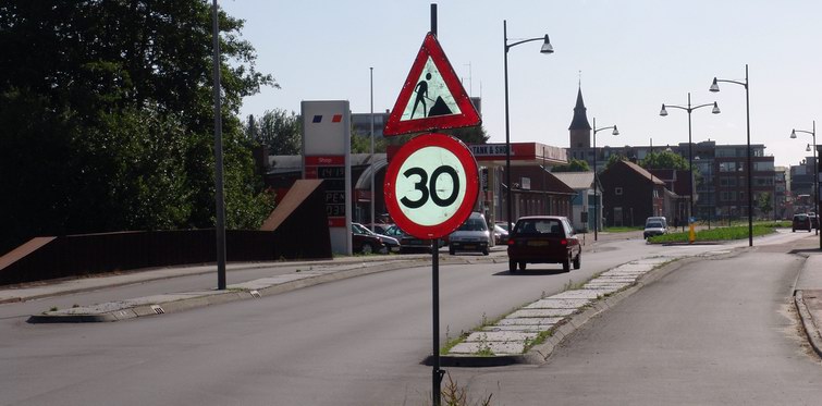 Want rijd je in oostelijke richting -dus naar het centrum- dan kom je hier wèl een snelheidsbeperkingsbord (30) tegen.
