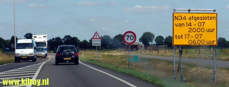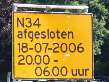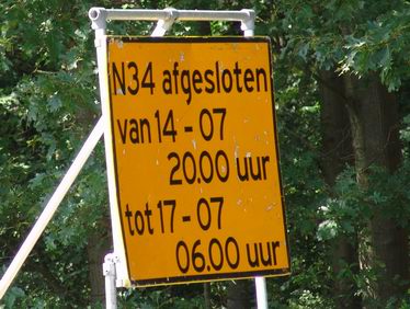 Volgens dàt bord gaat de N34 tòch vanaf 14-07 20:00 uur tot 17-07 06:00 uur dicht.