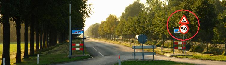 (Overigens zal het de slimsten onder u zijn opgevallen, dat het "50" bord voor een geldige snelheidsbeperking