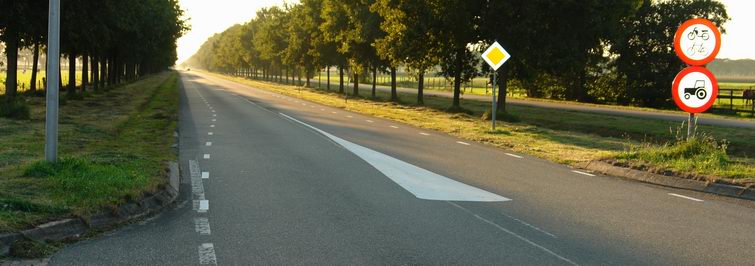 Het wegdek wordt van een nieuwe laag asfalt voorzien en daarom staan er waarschuwingsborden.
