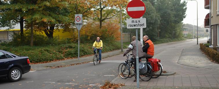 Hoogeveen: geen gescheur met rouwstoeten, alstublieft ! Wie in Hoogeveen van het Haagje de Beukemastraat inrijdt, pleegt volgens de borden een verkeersovertreding. Je mag die straat dus -zelfs als fietser- niet inrijden. Tenzij je deel uitmaakt van een rouwstoet, zo het onderbord. ![]() En zelfs dan moet je je daar inhouden, dus niet met 50 door de straat scheuren met die zwarte taxi, alsjeblieft. Vandaar het bord met de snelheidsbeperking (30)... |