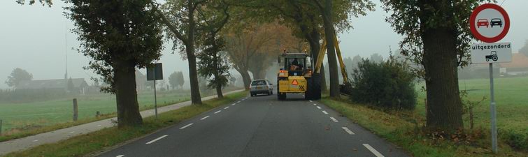 Riegshoogtendijk: helemaal geen borden nodig ! Dezelfde dag -even verderop, op de Riegshoogtendijk -nu zónder snelheidsbeperking of waarschuwingsbord! - wéér werk aan de weg. ![]() De stilstaande, berm-maaiende tractor moest kennelijk voldoende opvallen door een armzalig zwaailichtje op het dak... Levensgevaarlijk, maar gelukkig bleef de melding "ongeval met letsel auto - tractor" die dag uit. Een wonder ! Een dag later troffen we hetzelfde voertuig aan op de Langedijk bij Hollandscheveld. Nu stilstaand (in de volstrekt onoverzichtelijke S-bocht!) en wéér zonder enige vorm van waarschuwing. |