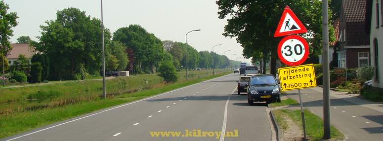 Helaas komen we met hoge regelmaat nog steeds op wegen, waar ten onrechte snelheidsbeperkingen worden opgelegd. Meestal zijn de werkzaamheden aan de weg niet niet begonnen, allang gereed of tijdelijk stilgelegd. In de meeste gevallen "vergeet" men dan de borden weg te halen. De bestuurder, die daar dan één keer heeft ervaren, dat hem ten onrechte een snelheidslimiet is opgelegd, negeert de borden waarschijnlijk de volgende keer; ook al staan ze er dan mogelijk wel terecht. Vandaag bleken er in de Krim opmerkelijke borden geplaatst. We reden van Coevorden naar de Krim en vonden bij de flitspaal deze borden, die de snelheid van 80 naar 50 wilden drukken. ![]() Er zou over 1500 meter werk aan de weg gaande zijn, maar helaas: zover het oog reikte: geen oranje jongens ! ![]() Bij de chicane vonden we weer zo'n setje, dat ons ook nu weer van "wegwerk" over een lengte van 1500 meter probeerde te overtuigen. Of we hier alstublieft het gas wilden loslaten tot we met een vaartje van 30 over het zinderende asfalt voortsukkelden. Maar hoe we ook speurden: Bob de Blunder en Flop de Bouwer schitterden door afwezigheid. Bovendien stond er direct achter de paal met de drie borden een bord, dat 50 als maximum snelheid oplegde. ![]() Aangezien het laatste bord geldt, mag je hier dus weer gewoon 50 km/uur als maximum snelheid aanhouden. Ook binnen de bebouwde kom, rijdende richting Coevorden, vonden we soortgelijke borden aan de Hoofdweg. ![]() Misschien waren onze helden te laat op hun werk verschenen of te vroeg vertrokken, maar in ieder geval: weg ! Tja; dan geloof je dit soort borden de volgende keer niet. Met alle gevolgen van dien... Of zouden ze eindelijk Bob's verdwijnmachine klaar voor gebruik hebben? |