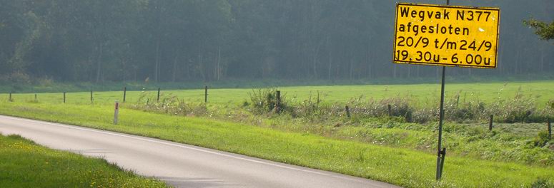 Een voortdurende bron van ergernis zijn de borden, die aan het vlak voor de Drentse grens eind van de Hoogeveenseweg waarschuwen voor werkzaamheden