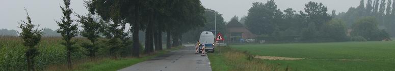 | Ook in Nieuwlande borden-ergernis; ook hier bij werk aan hoogspanningsmasten, nu aan de Drentseweg. In dit geval wordt er wel gewerkt, maar ontbreken de waarschuwings- en snelheidslimietborden aan de zijde van de weg, waar men aan het werk is en het verkeer dus nar de andere rijstrook moet. |