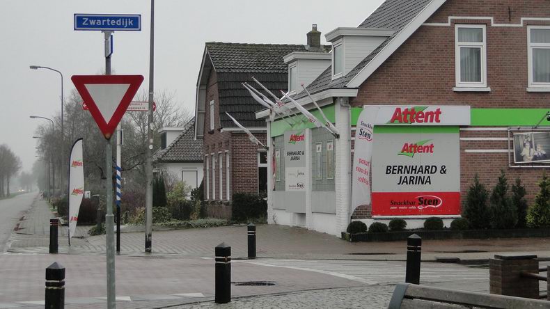 Verwarring alom dus, want aan de Slagharense kant van de Zwarte Dijk vertelt het straatnaambord op de gevel van restaurant Peking ons: |