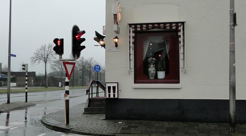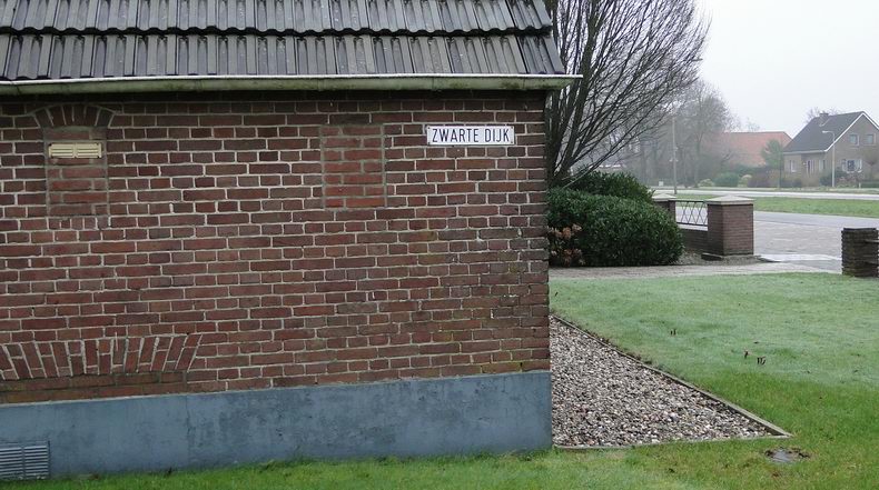 ...maar onze Tom Tom zegt, dat we ons op de Zwarte Dijk bevinden en het bord op de eerste woning rechts zegt hetzelfde... |