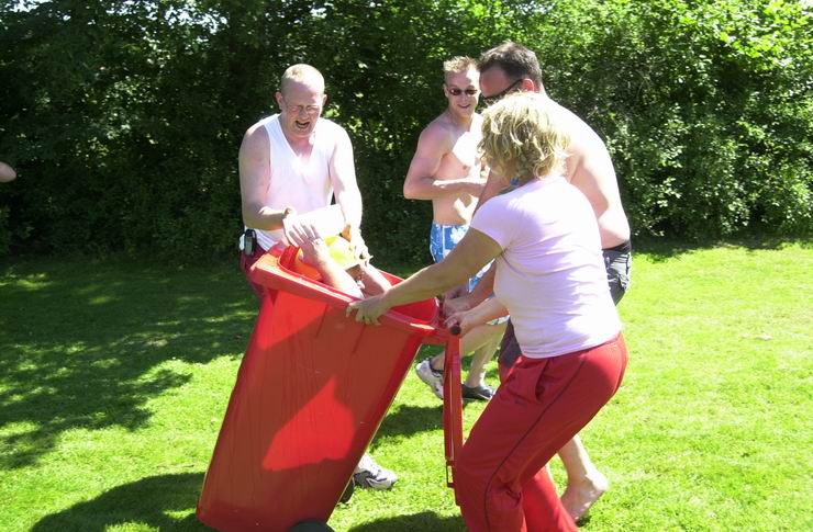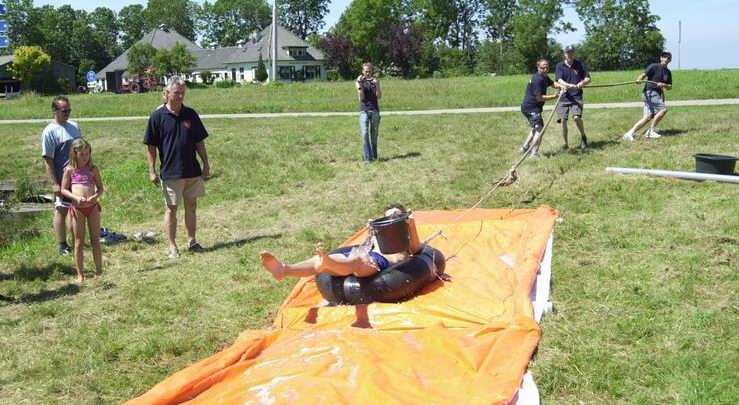 * Zittend in een band gesleept worden door je maatjes en zoveel mogelijk water overbrengen