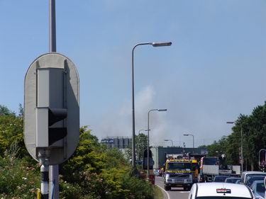 Op weg richting Almelo waren de rookwolken van het brandende bedrijvencomplex aan de Nijverdalsestraat al vanaf Beerze te zien.