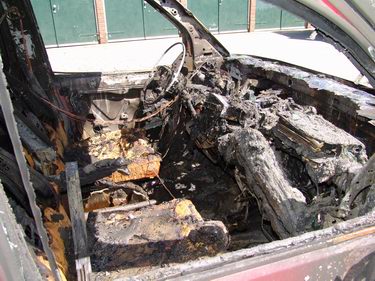 Deze auto was in de nacht van vrijdag in brand gestoken, als tweede in de inmiddels lange rij van uitgebrande voertuigen...