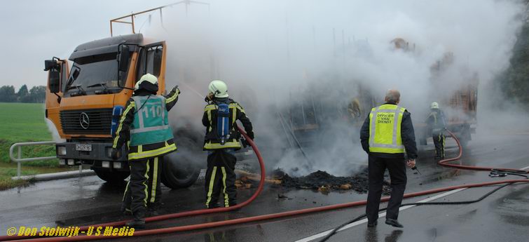De N34 werd op de plaats des onheils door het zeer dichte rookgordijn volledig aan het zicht onttrokken.