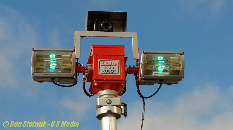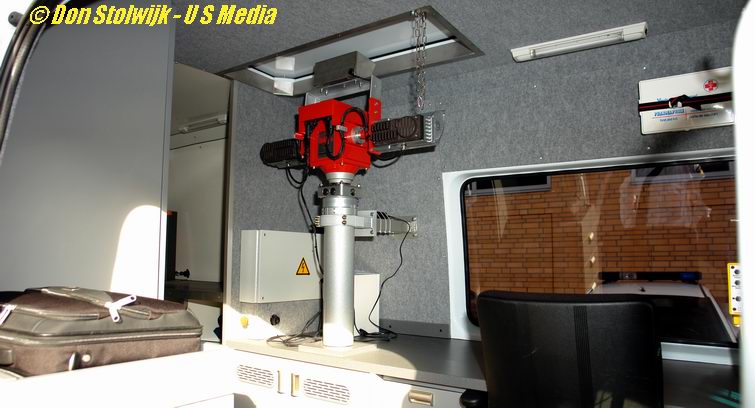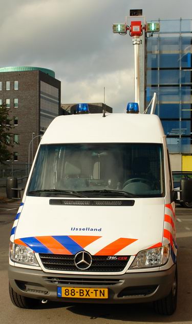 Boven in de mast, die met perslucht via afstandsbediening omhoog gaat, bevinden zich een digitale camera en twee xenon-lampen.