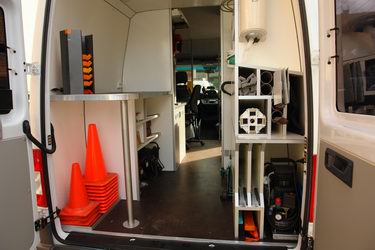 is bijvoorbeeld zo ingericht, dat alle direct benodigde materialen van buitenaf bereikbaar zijn, zonder de auto in te hoeven klimmen.