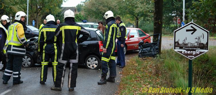 | Maandag 23 oktober 2006 Nieuw Schoonebeek ( Kruising Kerkenweg-Boöveenweg-Dr Ir H.A. Stheemanweg ): Vrouw gewond na botsing met tractor met kiepwagen De berm lag -naast eikels- nu ook bezaaid met aardappels. |