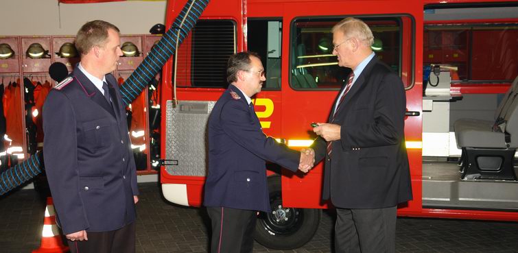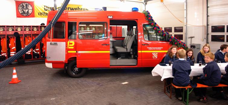 In onze reportage van 9 oktober heeft u kunnen zien, dat de vrijwillige brandweer van Emlichheim de beschikking heeft gekregen over een spiksplinternieuwe "Einsatzleitwagen": een bij GSF in Twist voor dit doel (commandovoertuig) omgebouwde Volkswagen LT 35.