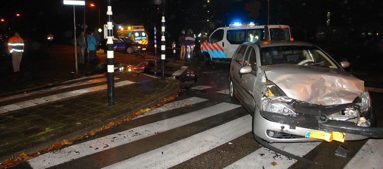 de botsing hoofdletsel op; haar kind, dat in een kinderzitje zat, bleef waarschijnlijk ongedeerd.