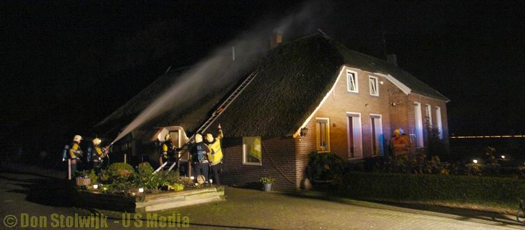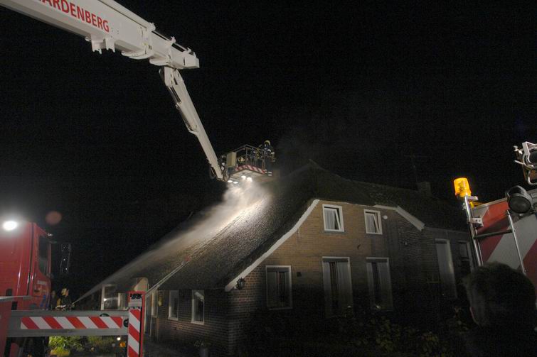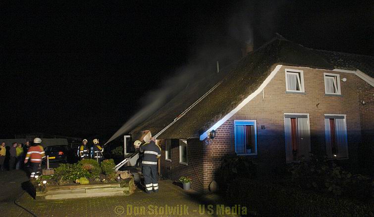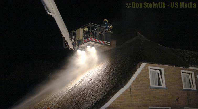 Schoorsteenbrand in rietgedekte woning