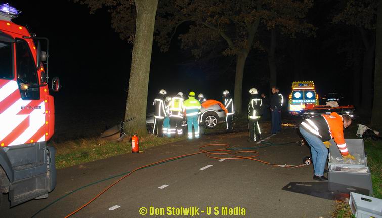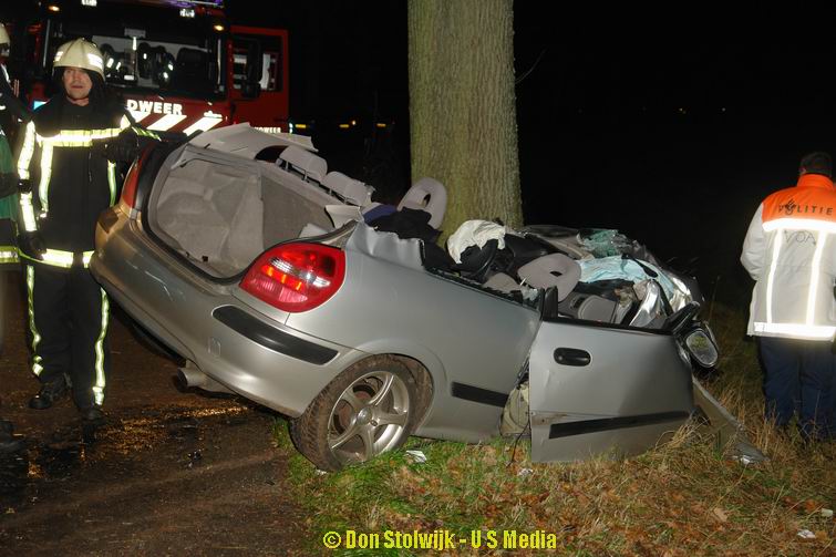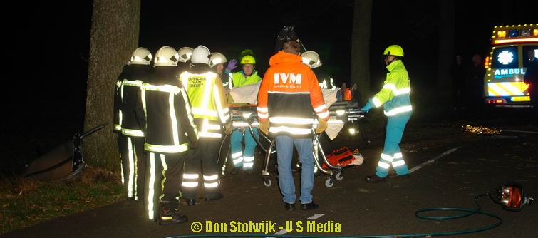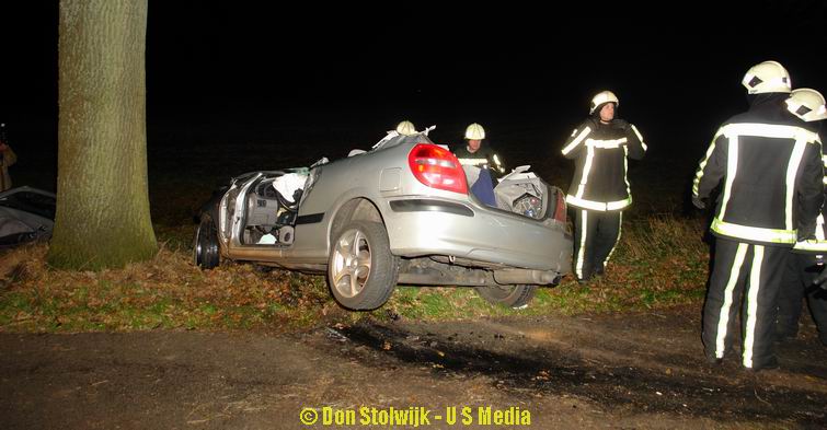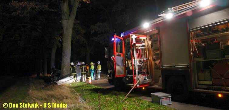 Auto total loss en bestuurder gewond na botsing tegen boom