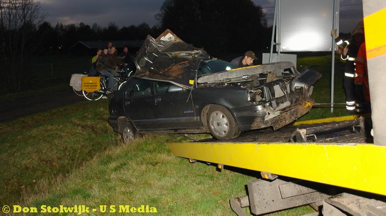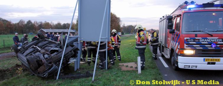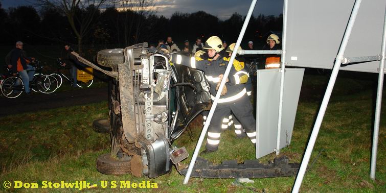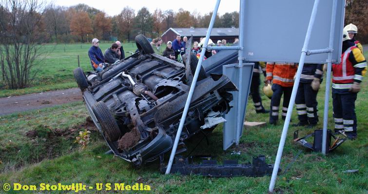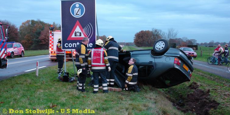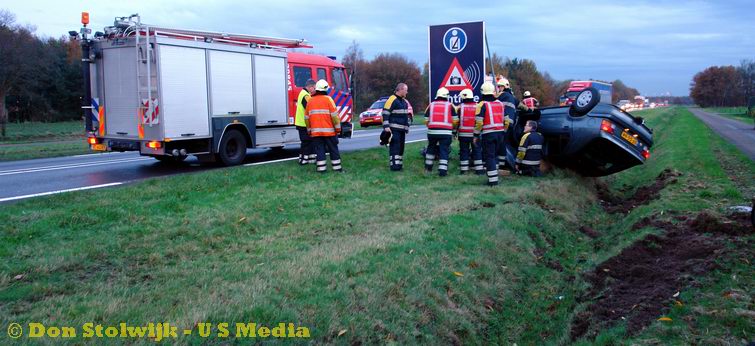 Auto over de kop na foute stuurcorrectie