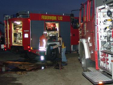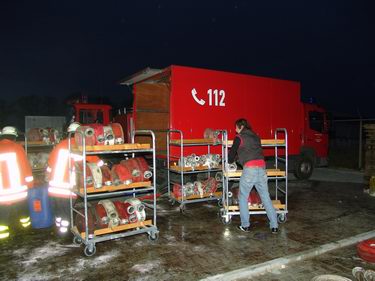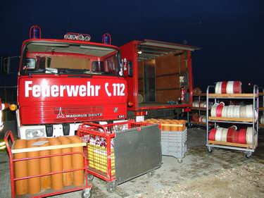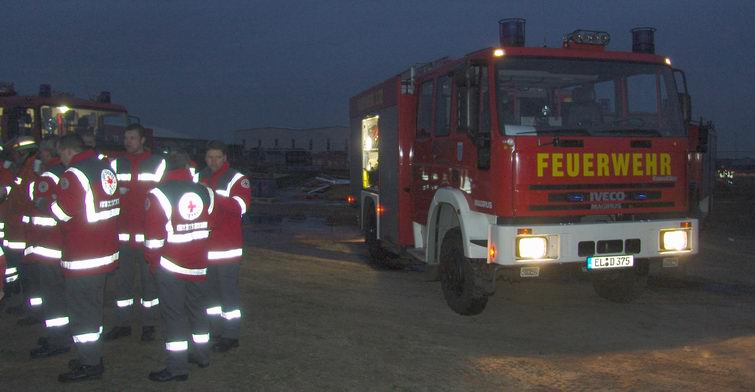 Na gedane arbeid: broodjes, frisdrank en koffie! Foto hieronder: medewerkers van het Duitse Rode Kruis