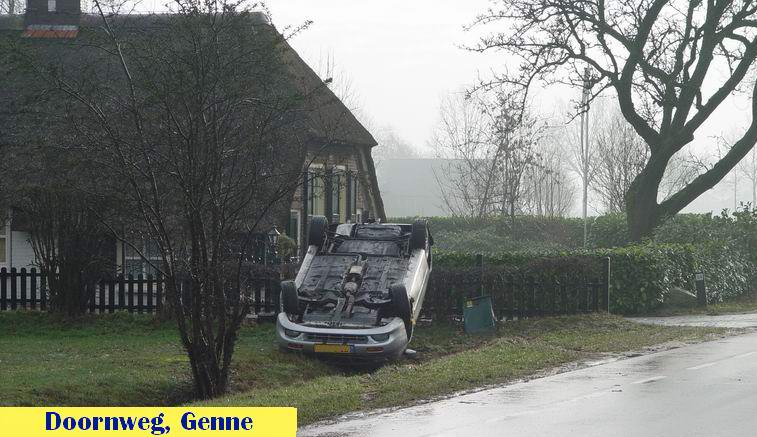 Op de terugweg ontdekten we nog iets vreemds: in een tuin aan de Doornweg in het buurtschap Genne lag een auto op zijn kop.