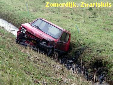 Een automobiliste was onzacht van de Zomerdijk in Zwartsluis af gegleden.