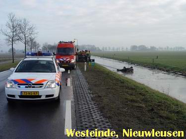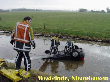 Het korps van Nieuwleusen was er snel bij en meldde, dat de duikers konden inrukken: de twee inzittenden stonden al op het droge.