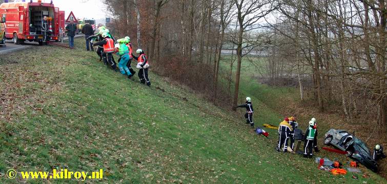 Auto maakt enorme buiteling na aanrijding; twee gewonden