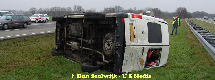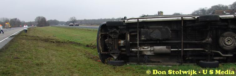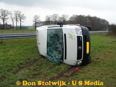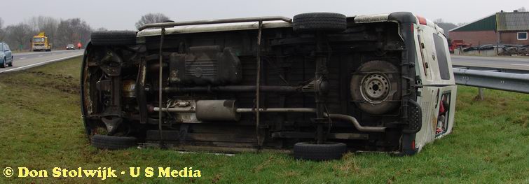 Busje over de kop na fout afgelopen inhaalmanoeuvre
