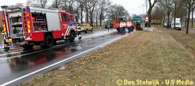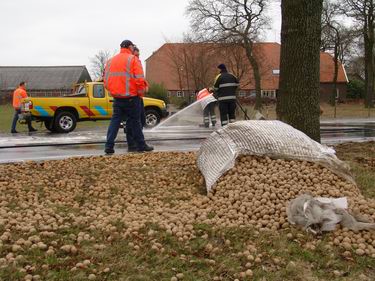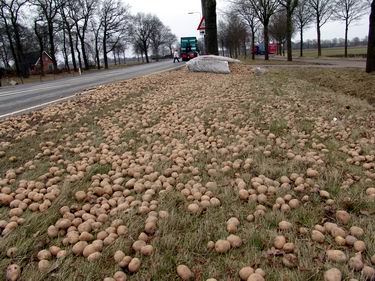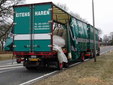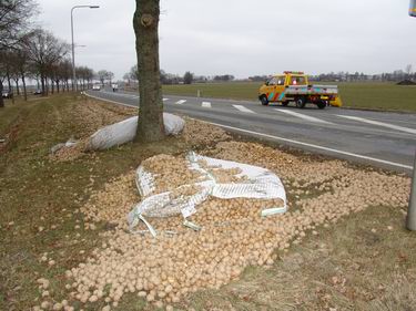 Slingerende vrachtwagencombinatie verliest tonnen pootaardappelen