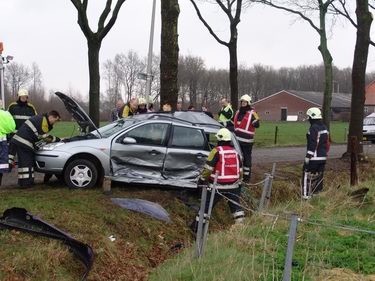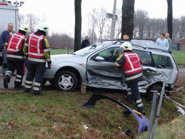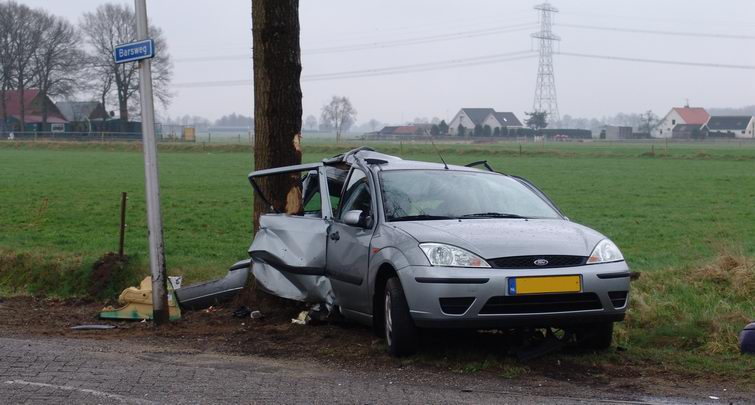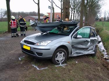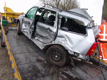 De trieste resten van wat vanmorgen nog een fraaie, nog geen drie jaar oude Ford Focus was.