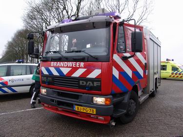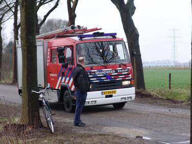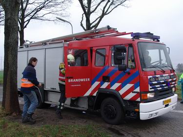 Vanwege de weglekkende benzine is de situatie te gevaarlijk. "Is de brandweer aanrijdend?"