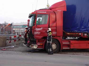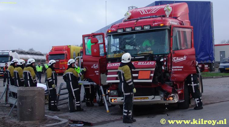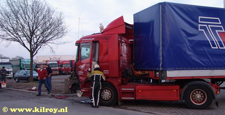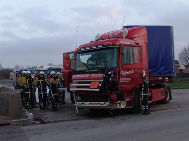 Trucker gewond bij aanrijding tussen twee vrachtwagencombinaties