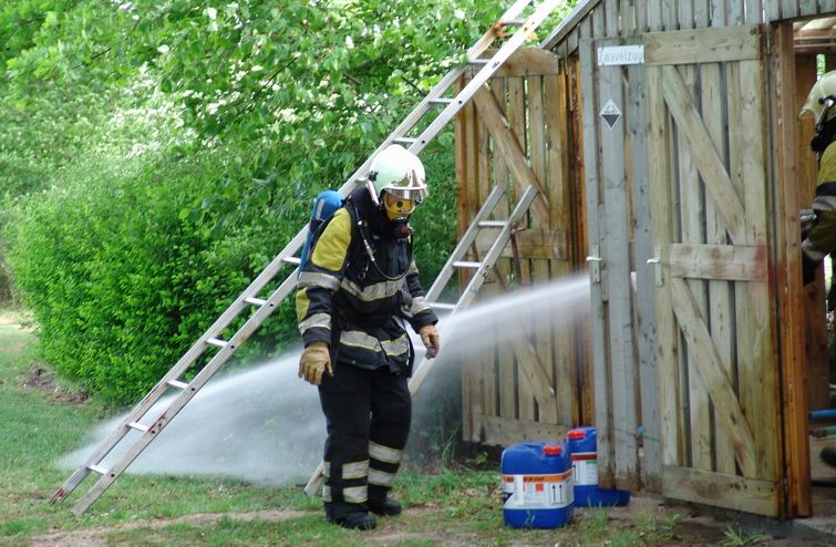 Brandweer de Krim verwijdert bij overtanken gemorst bleekwater