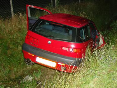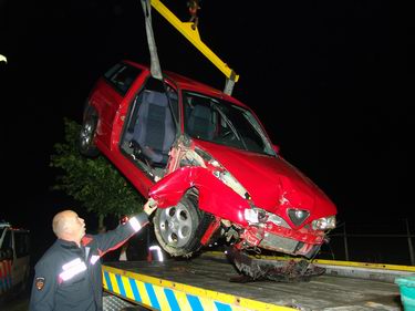 Alfa ramt twee bomen en belandt in sloot